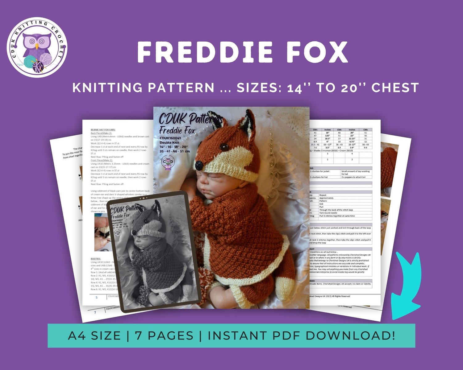 If you're looking for a fun and creative knitting project for your baby or as a gift, our digital download fox outfit knitting pattern tutorial is the perfect choice. This pattern includes instructions for creating a very cute fox outfit, including a jacket, shorts, hat, and booties, in sizes ranging from 14 to 20 inches chest.