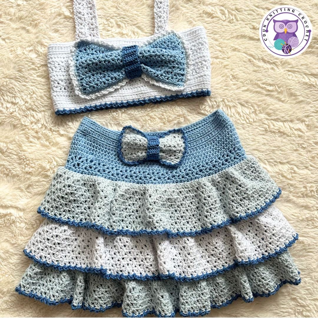 This sweet summer skirt and top crochet pattern will grow with your Princess year on year.